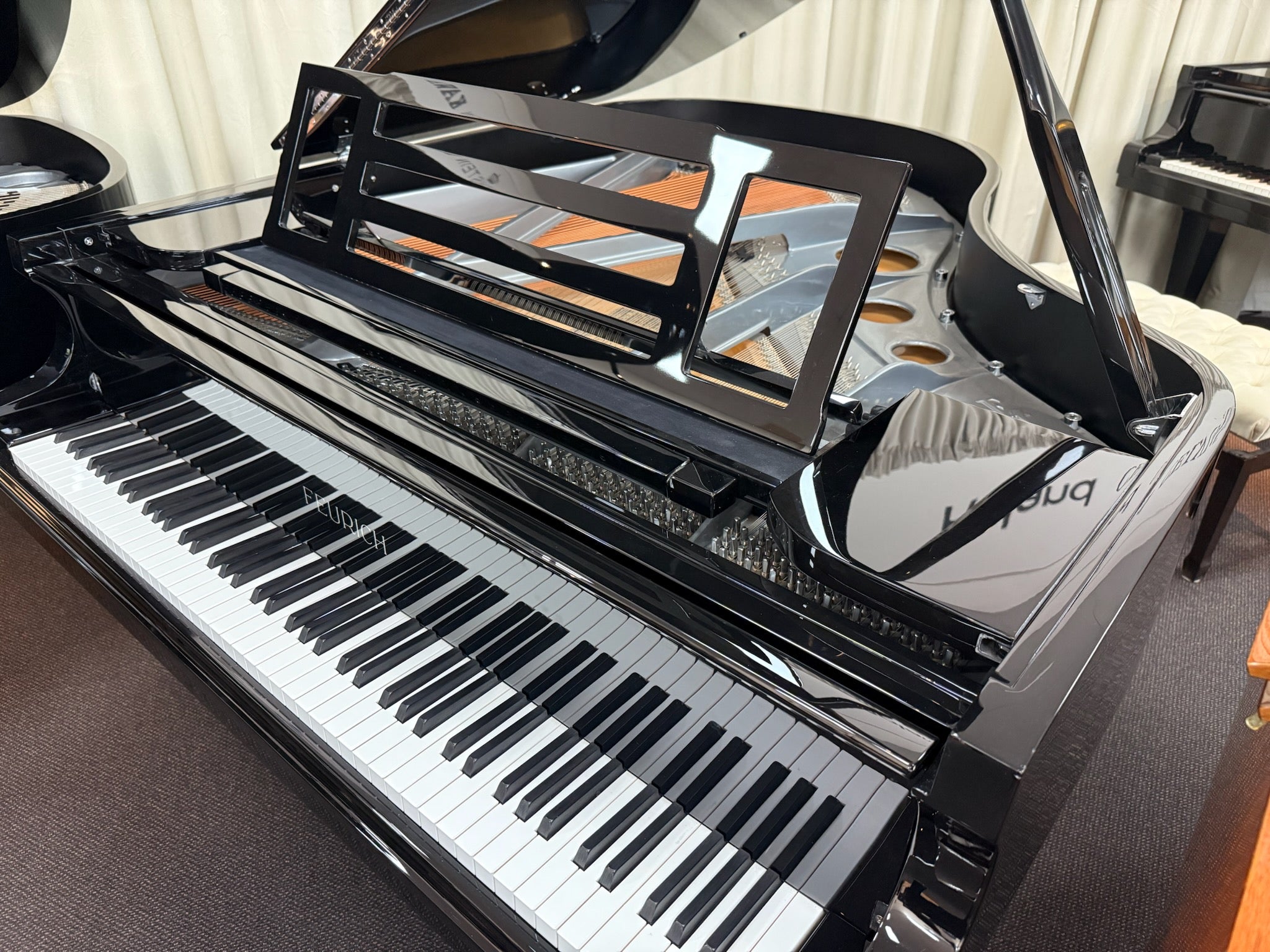 The Feurich 179 features a rich, warm tone with excellent sustain and dynamic range. Its robust yet responsive action is designed for precise control and expressive playing, while the high-quality reinforced soundboard provides greater resonance and stability. The integration of the iQ system preserves the piano's acoustic integrity and playability.